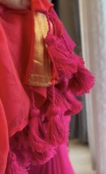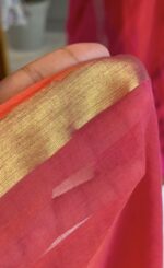 Bright, bold, and beautiful — Sundari celebrates the joy of colors with its stunning half-and-half combination of orange and fuchsia pink. Crafted from pure 120 count mul cotton, this saree offers a lightweight, soft, and breathable drape that flows gracefully. The subtle golden border enhances its vibrant hues, making it perfect for festive occasions and elegant gatherings alike.